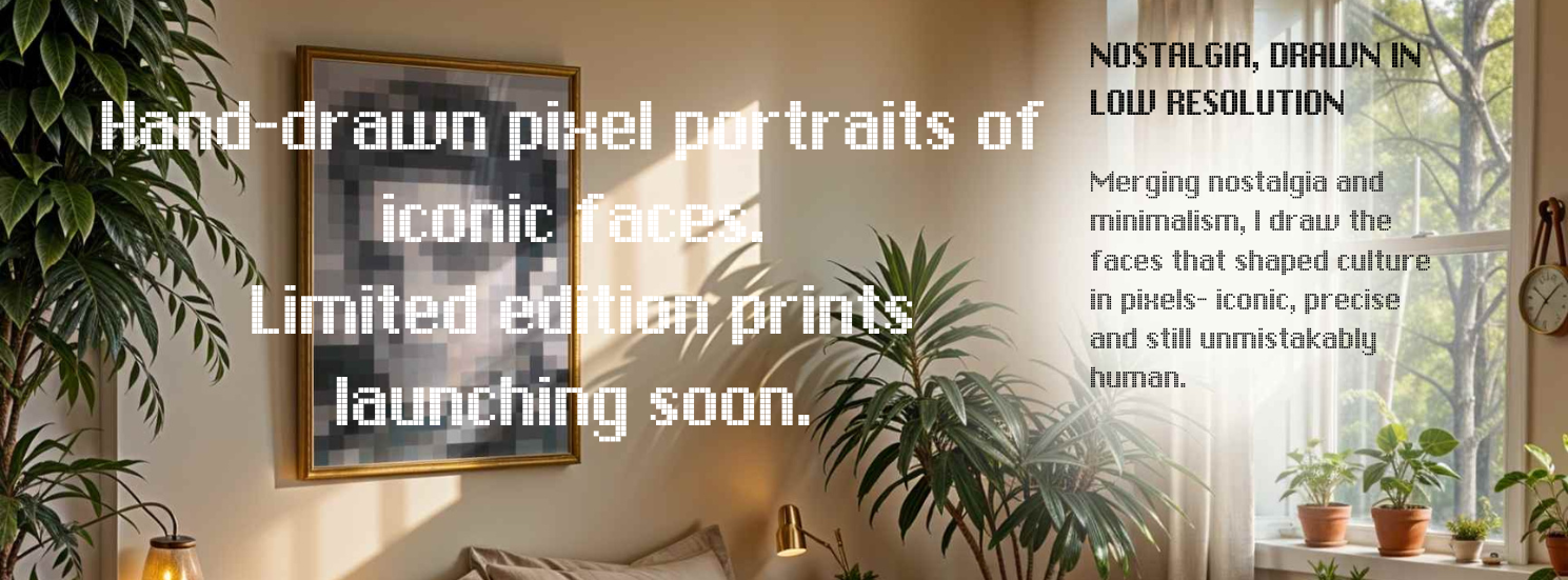 I capture nostalgia in low resolution, translating familiar faces into modern, geometric portraits drawn entirely by hand.